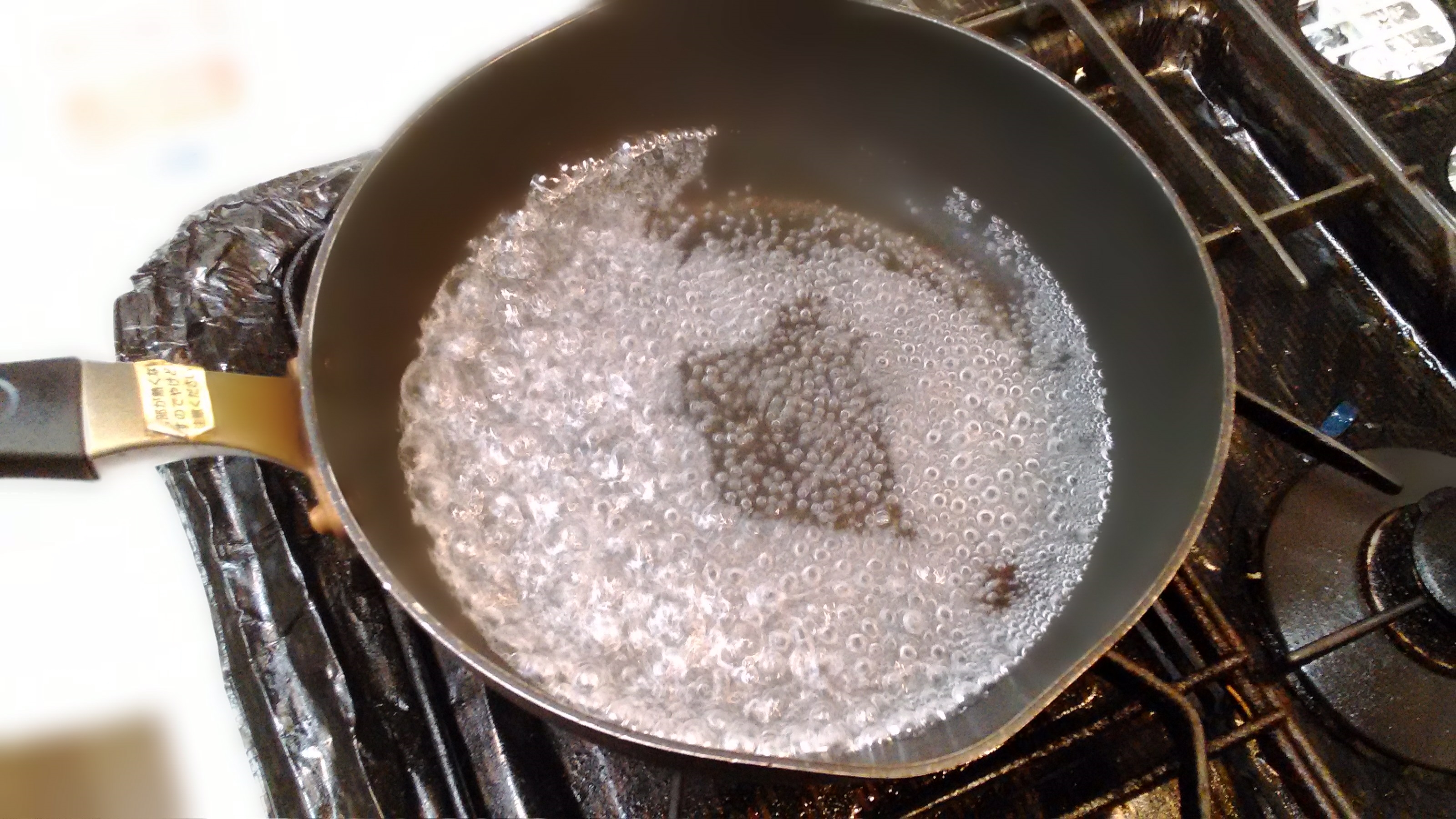 麺がかぶるくらいの水をフライパンに入れて沸騰させます。